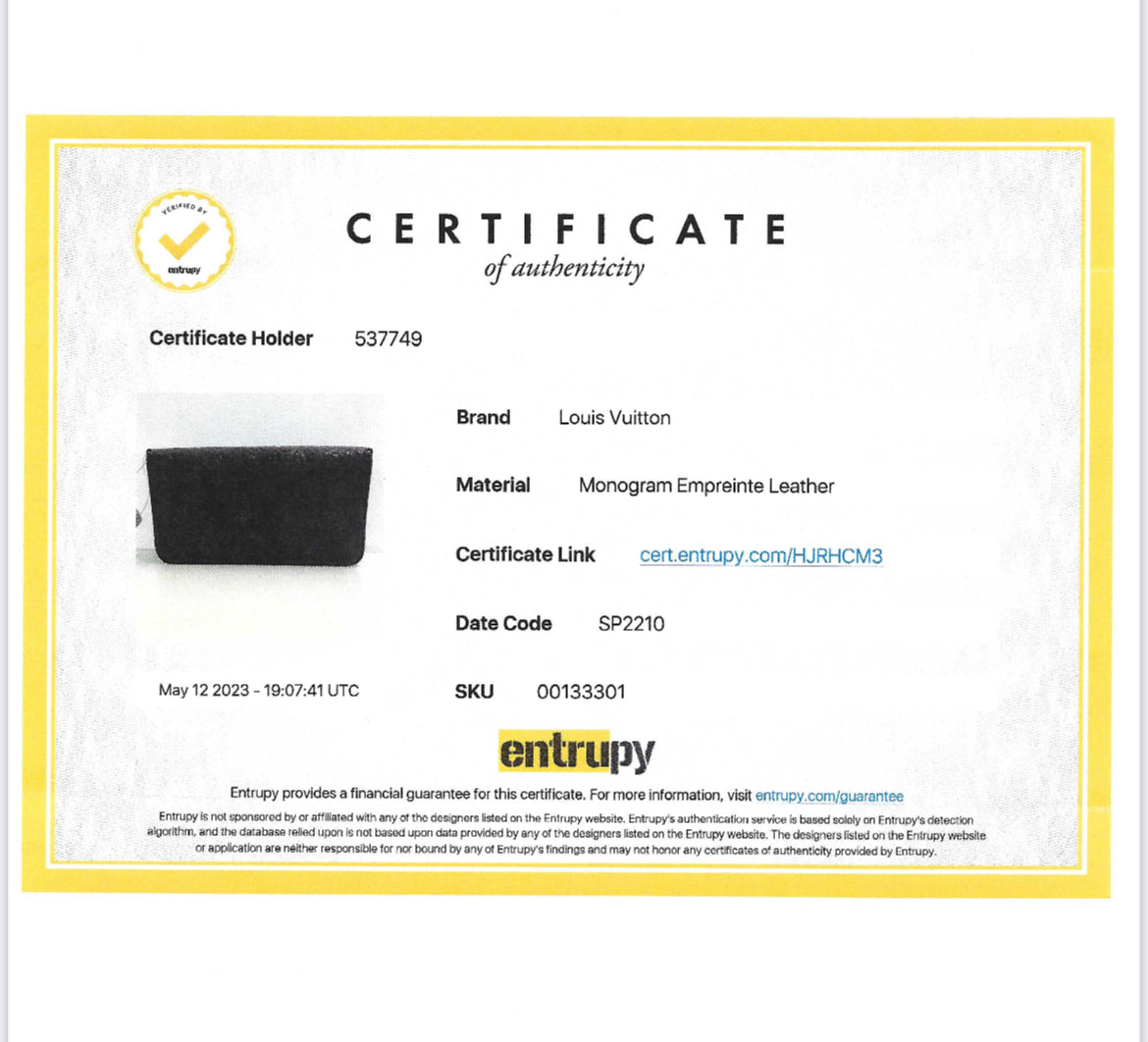 Entrupy Certificate of Authenticity Code: HJRHCM3